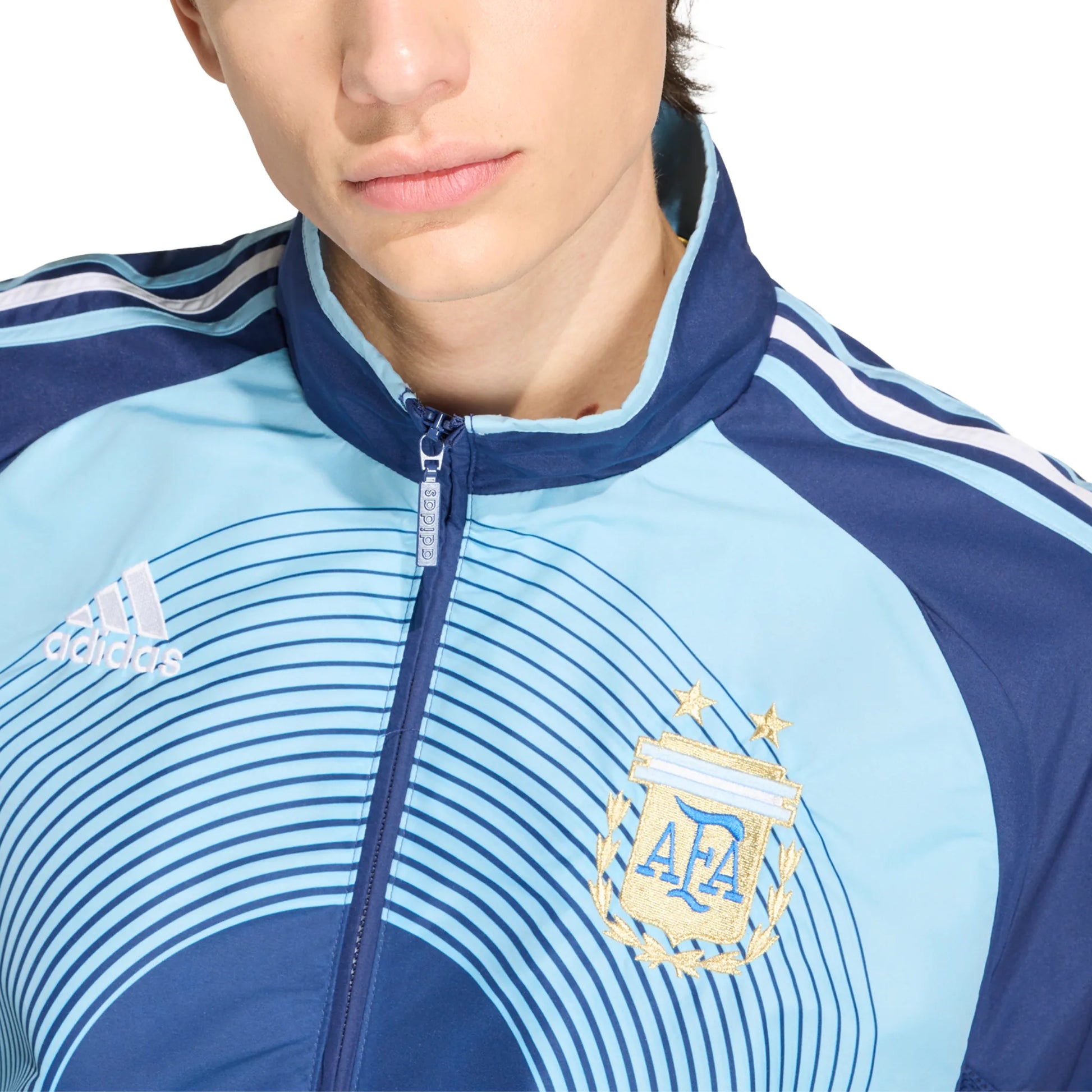 Relive the glory days with the Argentina Away Track Top 2006, a nod to football history. This tracksuit top brings back the iconic 2006 design, and it’s a fantastic choice for fans and fashion enthusiasts alike. This product speaks to all vintage and retro lovers. Crafted with a loose fit, the tracksuit top offers comfort and freedom of movement, making it suitable for both casual wear and cheering on your team. The zip closure means it’s easy to put on and take off, while the stand-up collar adds a touch of classic flair. With the Argentina crest proudly displayed, this tracksuit top is a must-have piece for a football aficionado. Proudly display your love of the game with adidas, where heritage meets modern style.