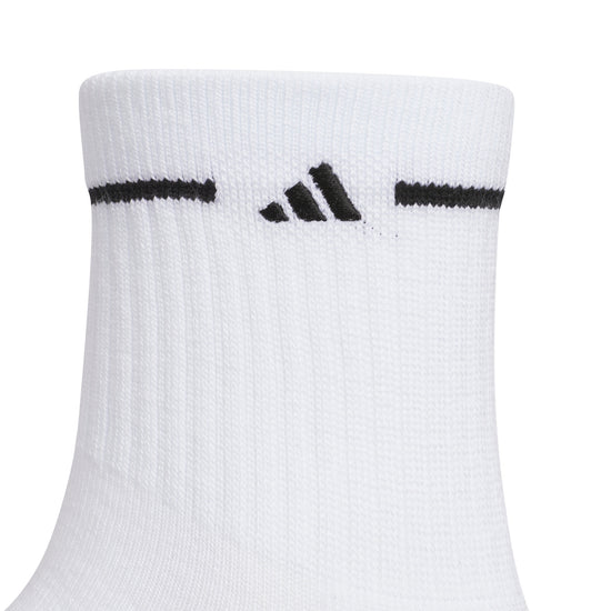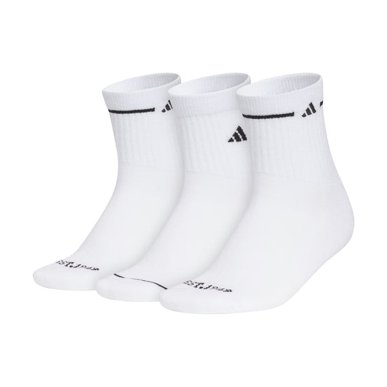 Take care of the feet that support your movement in these women's Cushioned Sport 3.0 3-Pack High Quarter Socks. Made with adidas CLIMACOOL, they wick away sweat and provide ventilation for lasting comfort. They're stretchy and soft, with knit-in cushioning and ribbed cuffs that fit snugly around your ankles.