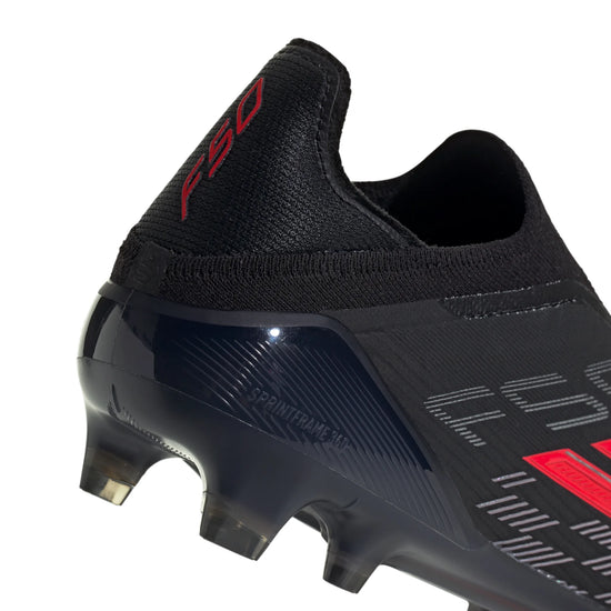 The F50 Elite Laceless Firm Ground Football Boots redefine speed and precision. Created for those who dare to push boundaries, they offer comfort and style so you can focus on your performance without distractions. Enjoy a versatile, dynamic fit and comfort thanks to the engineered Primeknit collar. The lightweight Fibertouch upper provides support and cushioning where you need it most, while the Sprintweb high-definition 3D texture is crafted for effective ball contact, especially when dribbling at high speeds. The Sprintframe 360 outsole with anatomically designed coring structure and external heel counter delivers acceleration and speed. Designed for use on firm ground, offering reliable traction as you move around the pitch. Featuring midfoot stiffening and a combination of bladed and semi-conical studs for acceleration and speed. Each time you strike the ball, experience the game-changing innovative features of these football boots from adidas adorned with iconic branding.