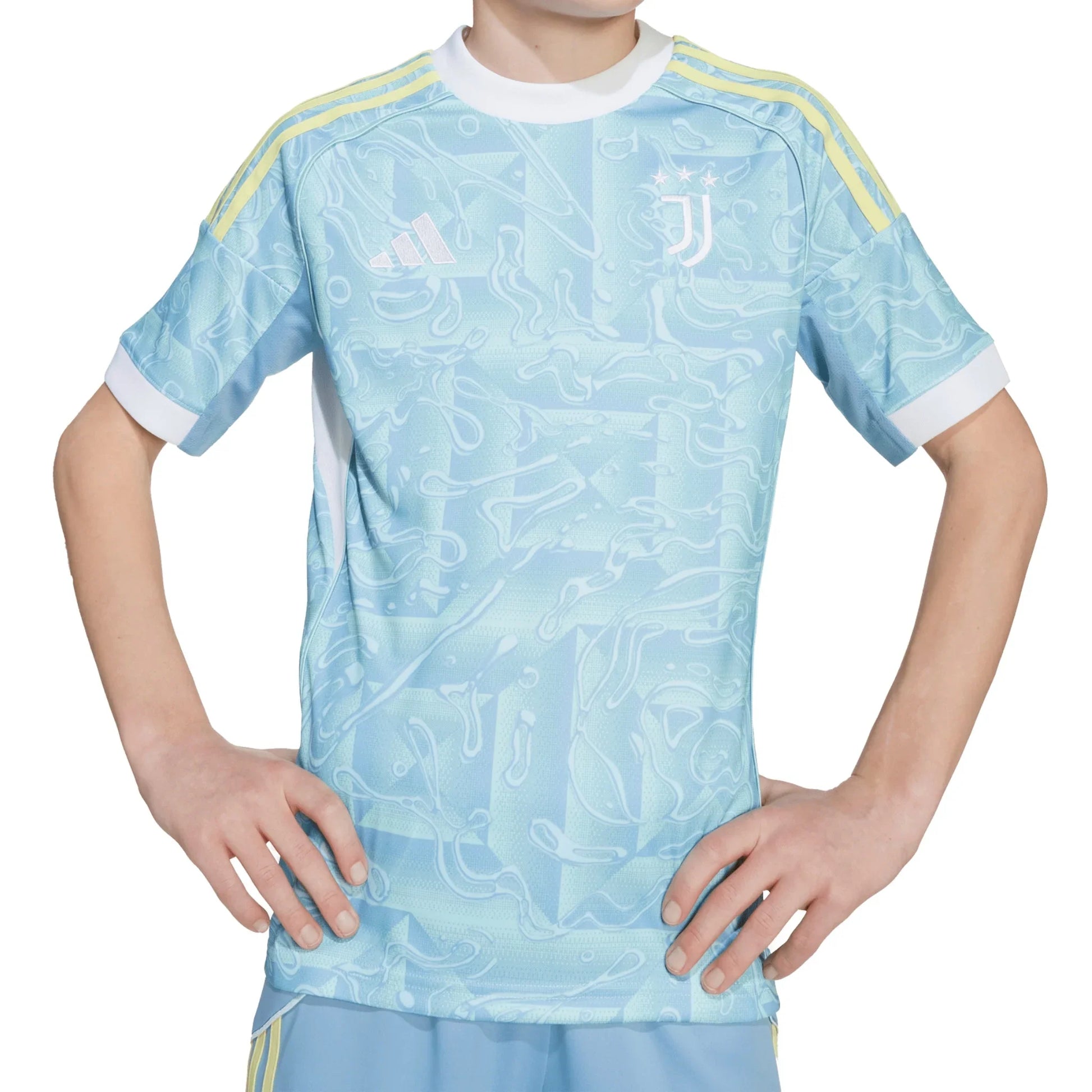 Carry those carefree summer vibes into a brand-new football season. Showing off blue pastel shades and flashes of yellow and white inspired by the Turin city flag, this juniors' adidas Juventus jersey is sure to make a splash on match days. Moisture-managing AEROREADY and embroidered details combine to deliver comfort and pride.