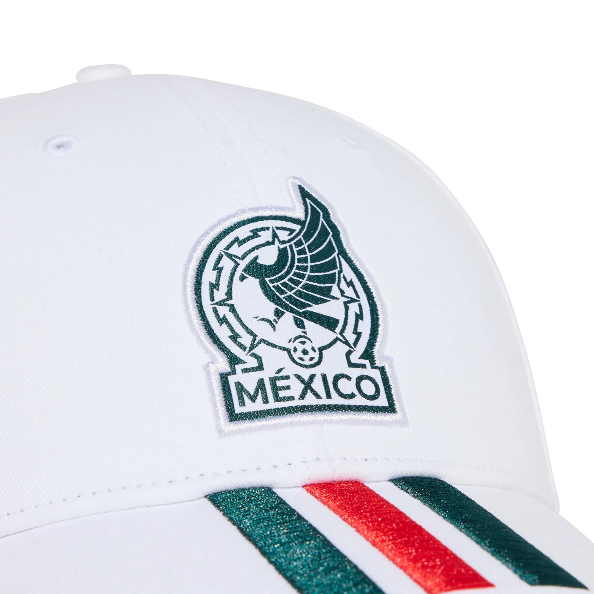 The Mexico 26 Baseball Cap with 3 Stripes is your go-to accessory for showing off your football pride. Inspired by the classic football jersey, it combines style and comfort effortlessly. Crafted from twill, this cap offers a soft and breathable feel for all-day wear. The adjustable buckle closure provides a secure fit, while the iconic 3-Stripes design, embroidered performance logo and woven badge crest add authenticity. Whether you're cheering from the stands or enjoying a casual day out, it helps you look stylish and feel comfortable. Join the ranks of true football lovers with this adidas cap, designed to celebrate your passion for the game.