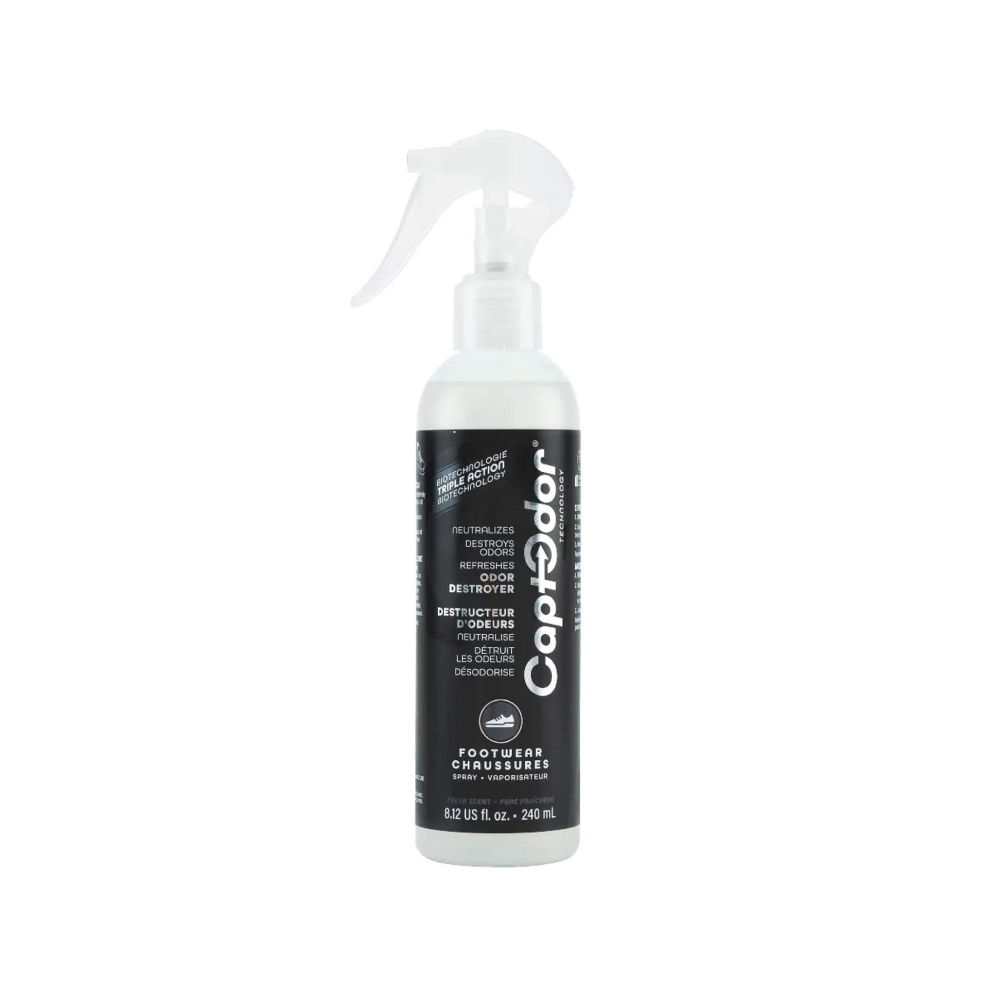 Captodor Footwear Odor Destroyer is a complex triple action biotechnological product developed specifically to destroy foul odors at the source impregnated in all footwear (running shoes, cleated shoes (cycling, soccer, football, soccer, golf), sandals, boots, skates, ski/snowboard boots, etc.): it neutralizes, destroys and deodorizes while leaving a refreshing Fresh scent for instant freshness. It is totally safe to use inside footwear. It’ s formulated with ingredients that can be used on various materials without causing damage or discoloration.