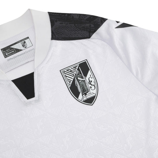 The 2025/26 Vitória SC home shirt combines style and sustainability in a sleek, distinctive design. Made from Eco Micromesh and Eco Everton fabrics, it offers excellent breathability and comfort with a slim fit and a Korean-style collar. A sublimated pattern pays tribute to King Afonso Henriques, a symbol of the club’s identity, while silicone details and embossed finishes add a premium touch. Designed for true fans, this shirt tells the story and pride of Guimarães, on and off the pitch.