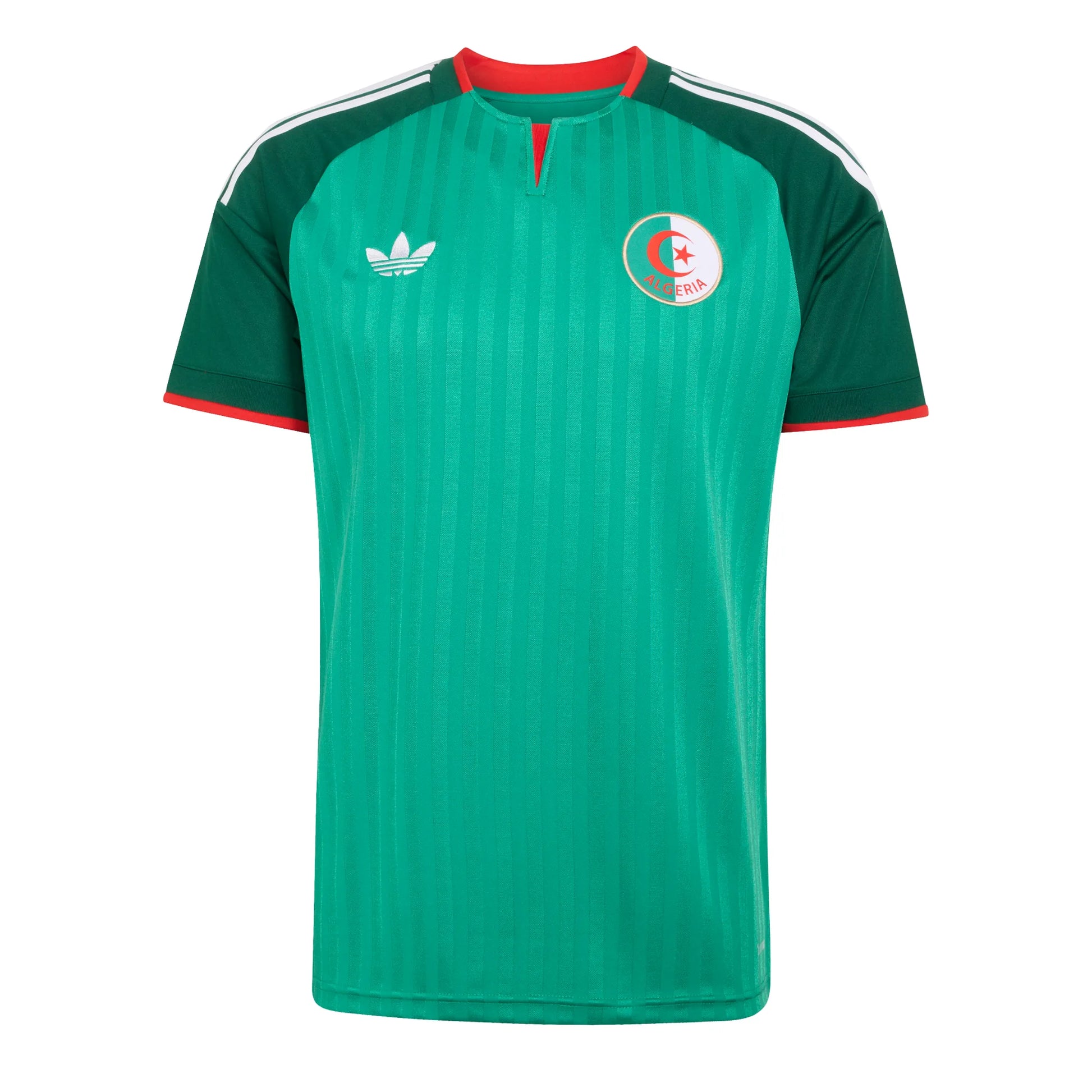 Continue your international football journey in 2026 with this Algeria 26 Away Jersey from adidas. A bold tribute to the country’s vibrant and varied landscapes, it’s sure to stand out when your team hits the road. Crafted from smooth jacquard fabric, this jersey comes with a crewneck collar for comfortable coverage. Cool. Dry. Ready. Climacool wicks and disperses sweat for cool, dry performances with minimal distractions on and off the pitch. A symbol of your pride, a national flag has been sewn onto the chest. So whether you’re representing your heroes on the pitch or celebrating an away win in the stands, you’ll feel connected to your country’s rich history.