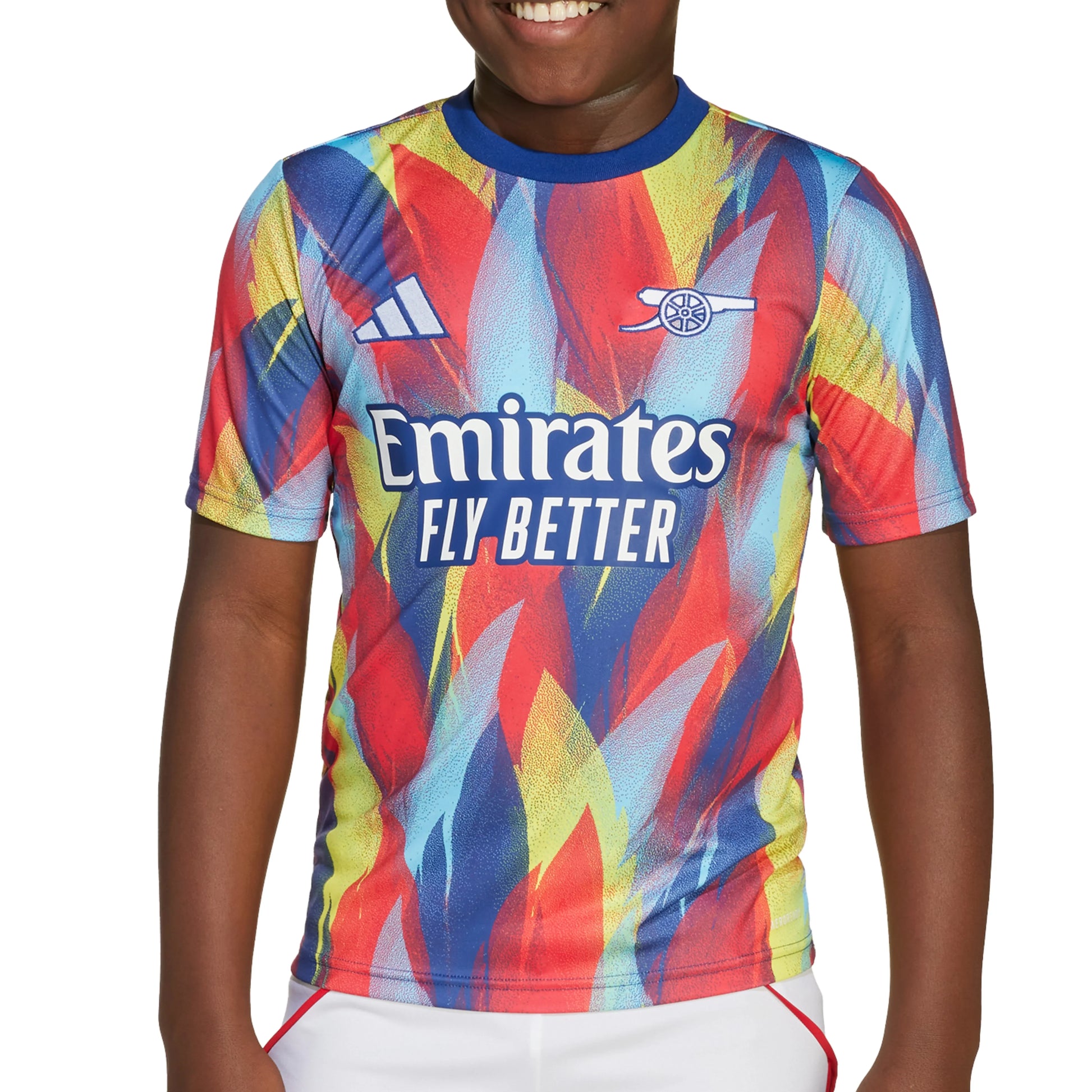 London comes to life when there's a carnival on the horizon. Bring festival vibes to your Arsenal fandom by pulling on this juniors' adidas football jersey. The shirt players wear before games, it stands out with vibrant colours and carnival costume-inspired graphics. AEROREADY controls moisture to keep you focused while you train, play or back your club.