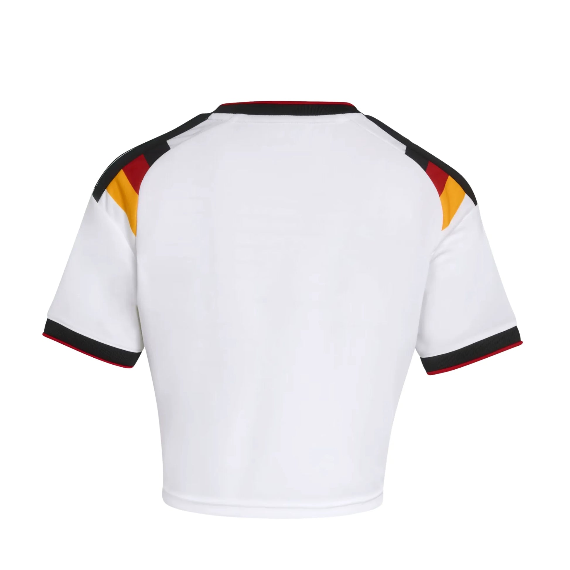The Germany 26 Home Cropped Jersey is a celebration of football heritage and innovation. Inspired by iconic moments, this jersey combines classic elements with the latest technology to create tomorrow's icon. Cool. Dry. Ready. Climacool wicks and disperses sweat for a cool, dry and distraction free performance.The doubleknit construction provides durability and comfort, making it a must-have for passionate fans. With a regular fit, this jersey is designed to be not too tight or too loose. The EQT collar adds a touch of sophistication, while the additional flag label sign-off completes the look. Whether you're cheering from the stands or playing on the pitch, this jersey embodies the spirit of football.