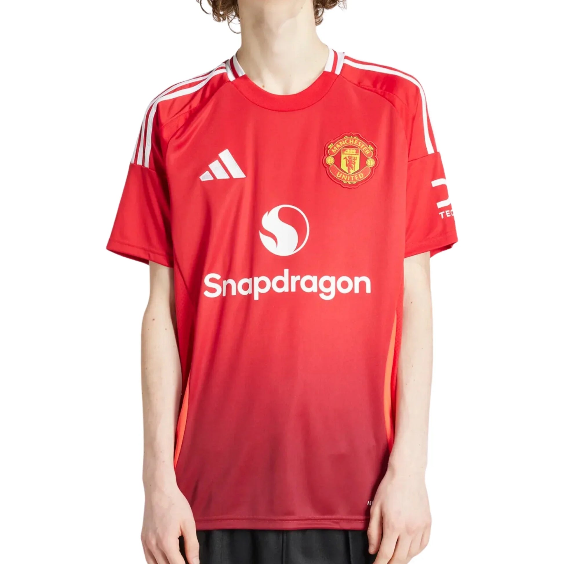 Manchester United at Old Trafford. Home fans adore them and even rivals can't ignore them. In 24/25, the club's timeless home jerseys shout even louder with bright red inserts on the sides and a subtle gradient design on the front and back. Made for supporters, this adidas football shirt includes moisture-managing AEROREADY and an embroidered badge.This product is made with 100% recycled materials. By reusing materials that have already been created, we help to reduce waste and our reliance on finite resources and reduce the footprint of the products we make.
