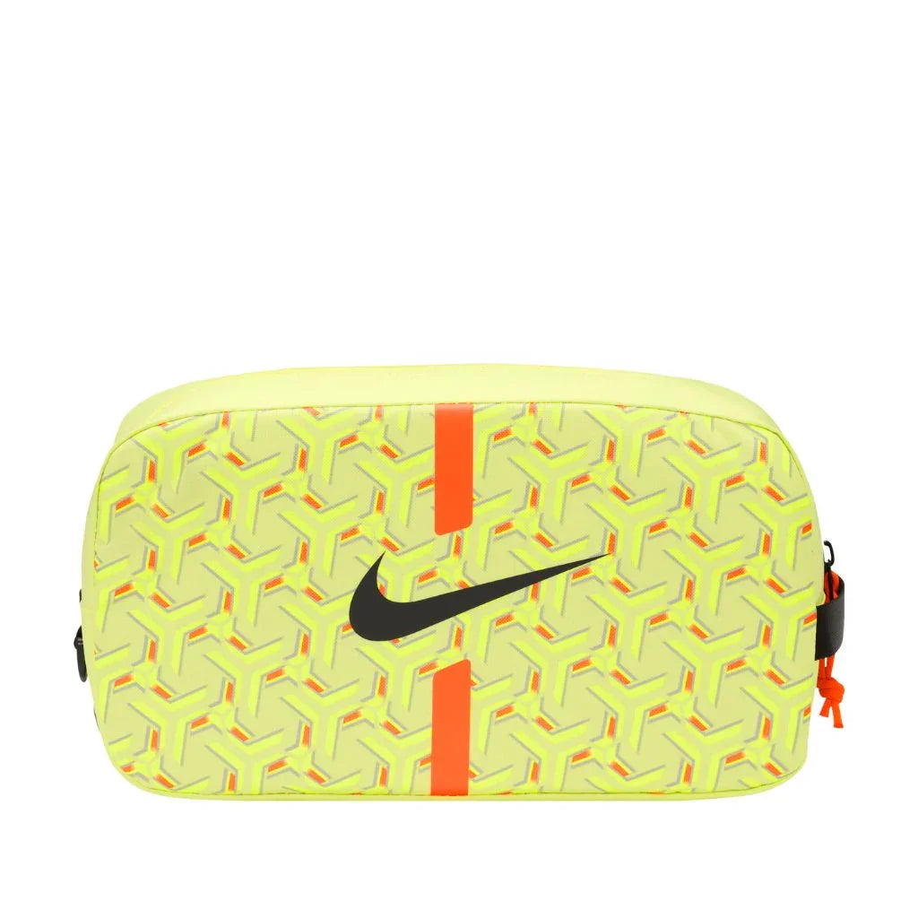 The Nike Academy Shoe Bag is specifically designed for your cleats and small essentials. It includes 2 zippered pockets and a haul loop so you can grab it and go.