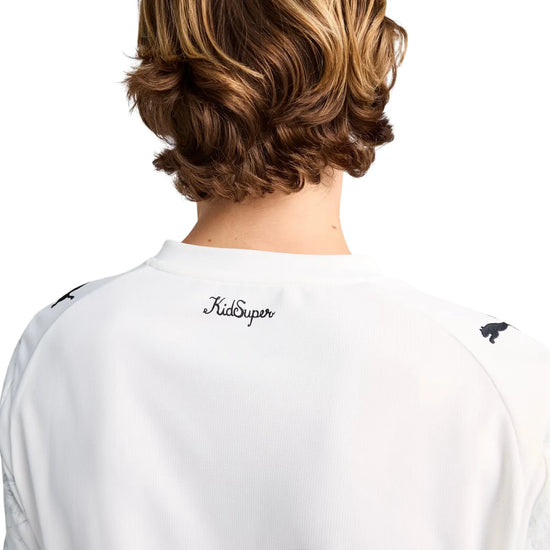 The classic is back – redrawn, repainted, and ready to play. The iconic sash design is back in the PUMA x KIDSUPER collection, reimagined with hand-painted graphics, a watercolor palette, and, as always with Manchester City, a whole lot of character. Inspired by Manchester’s graft and the pure joy of the Poznań celebration, it’s a fresh spin on a fan favorite – ready to show up on the global stage.