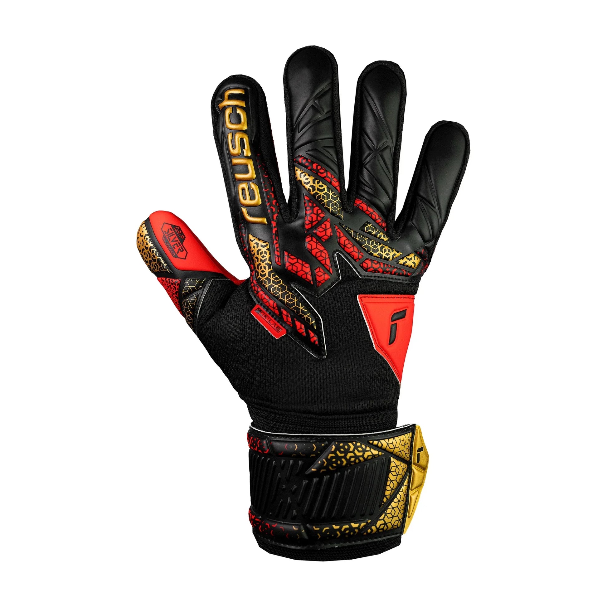 The Attrakt Silver is equipped with Reusch Silver latex for advanced grip, impact absorption thanks to extra cushioning and reliable abrasion resistance. Its Expanse Cut design enlarges the palm surface, increasing the contact area with the ball. The elastic cuff makes this glove easy to put on and take off. Ventilation channels help your hands stay cool and dry. Designed for your best catches!